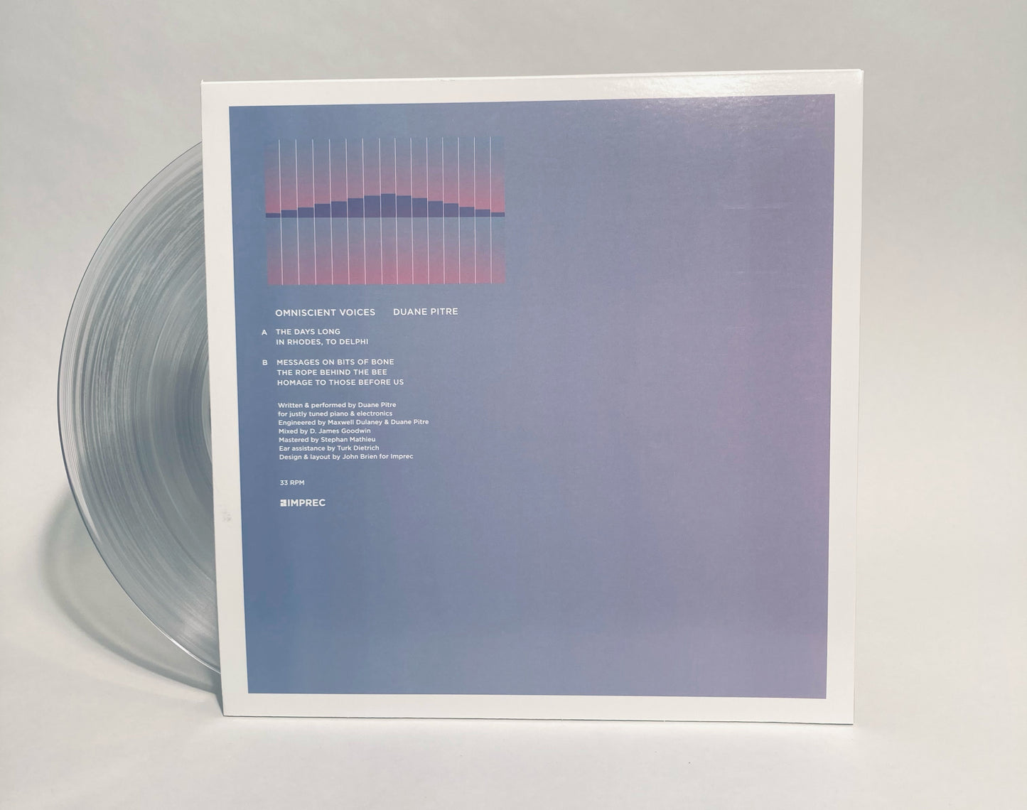 Duane Pitre returns to Imprec with Omniscient Voices, an articulate, intense and emotionally resonant set of five pieces for justly tuned piano and electronics.