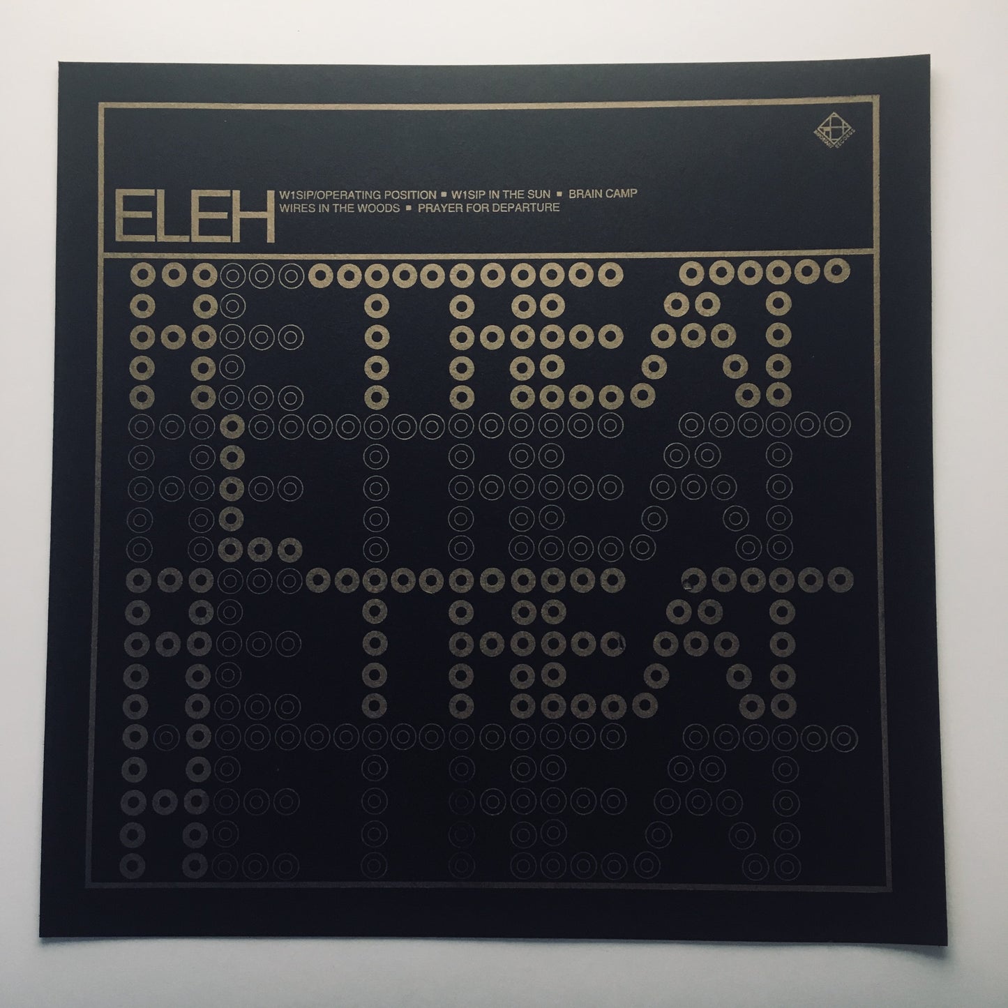Unused cover stock from the ELEH Retreat LP. Letterpress printed.